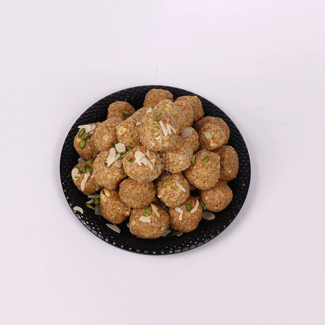 This ladoo is a tasty twist on traditional handmade snacks. It’s mildly sweet and made with sesame seeds, jaggery, sugar, pure desi ghee, gond, cardamom, and tree nuts.